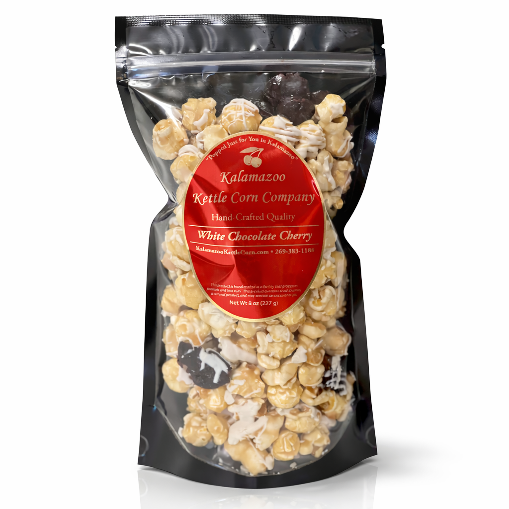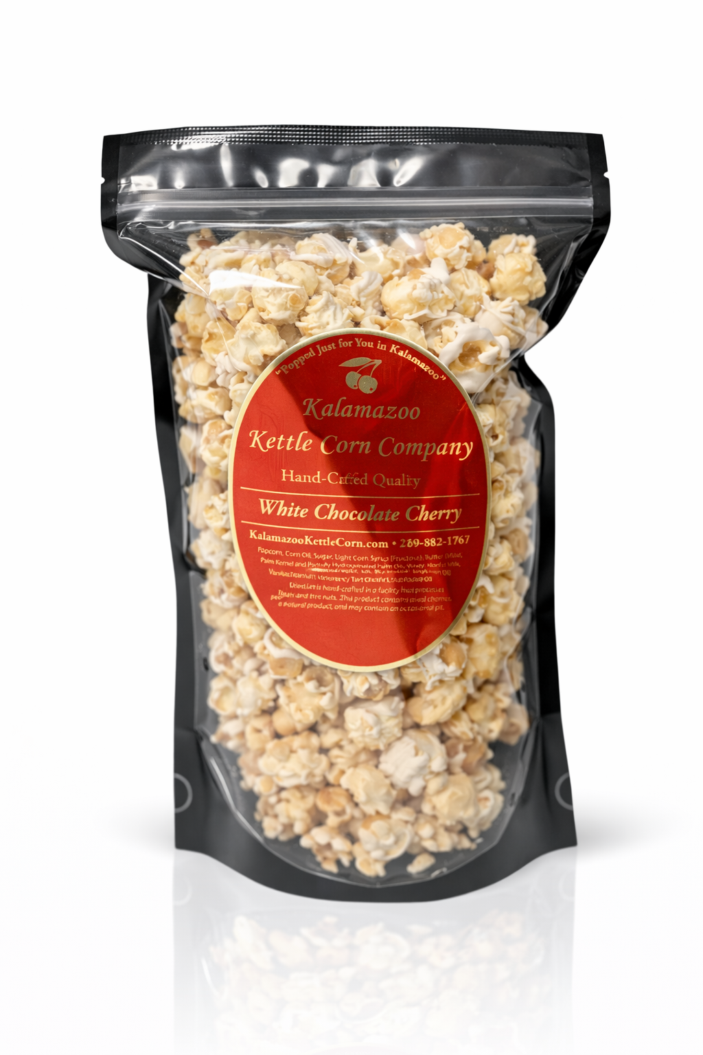 This popcorn is sweet enough for dessert and perfect for an everyday sweet snack. The base is a glazed mushroom popcorn, sprinkled with dried cherries and drizzled with white and milk chocolate.